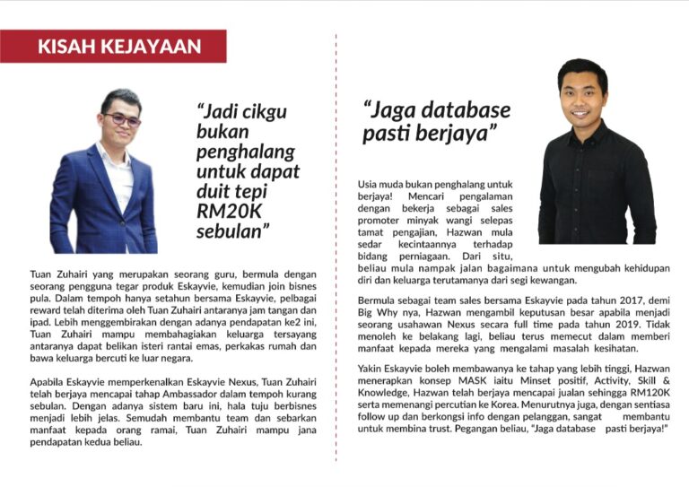 Dengarkan Perkongsian Dari Usahawan Eskayvie Nexus.